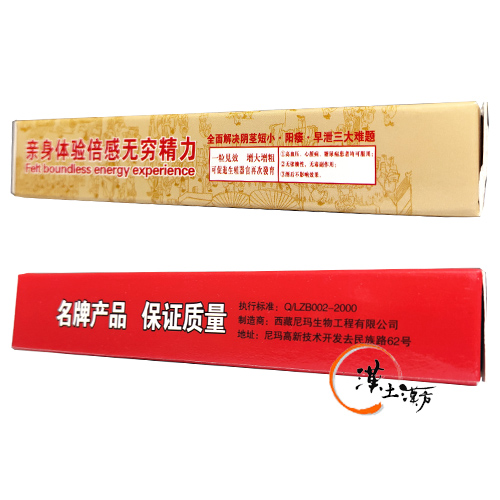 | 成分・分量 | 蔵紅花、冬虫夏草、雪蓮花、雪鹿のペニス、チルーの睾丸、辰の落し子など。 |