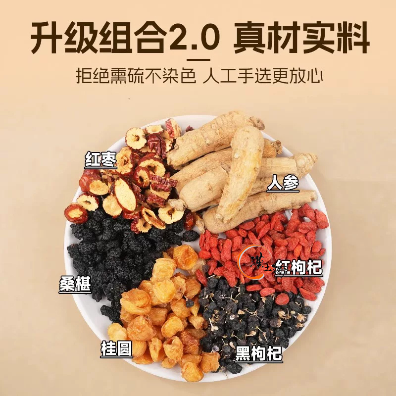 力強いエネルギー源となり、全身の活力を底上げします。 - 💧 燃料を注ぎ、腎を潤す(桑の実・クコの実・黒クコ)